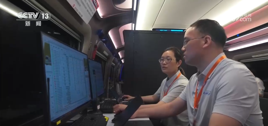 记者身后就是正在开展运用考核的CR450动车组。什么是“运用考核”,通俗的说,就是“刷里程”。从去年底样车下线以来,它就一直在各种各种达标考试,经过一轮一轮的“周测”“月考”“期中考”,已经交出了时速450公里的“答卷”,各项指标都已经合格。但是考试还得继续,因为按照技术要求,CR450要在指标合格的前提下,跑够60万公里,才能够载客运营。