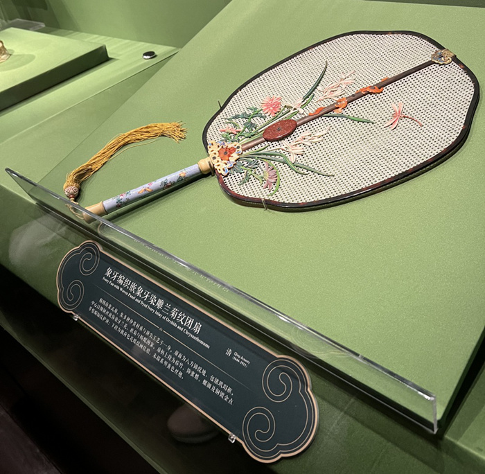 象牙编织嵌象牙染雕兰菊纹团扇,清