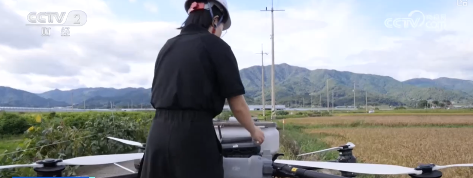 在韩国主要农业区全罗南道,李以萨与金珍京正使用中国制造的无人机进行播种和施肥。