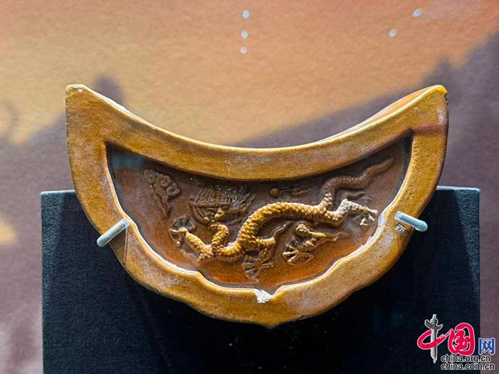 黄琉璃龙纹联办滴水残件 明早期 故宫造办处遗址出土 摄影 中国网记者 苏向东