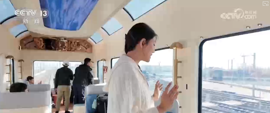 “星光·燕赵号”列车以“移动文化空间”为核心理念,外观融入传统纹样设计,而车厢里坐席更宽、视野更好,超大落地窗堪比“天然画板”,长廊里满是京津冀名胜风光展示,整个旅途还能观看各种非遗展演。
