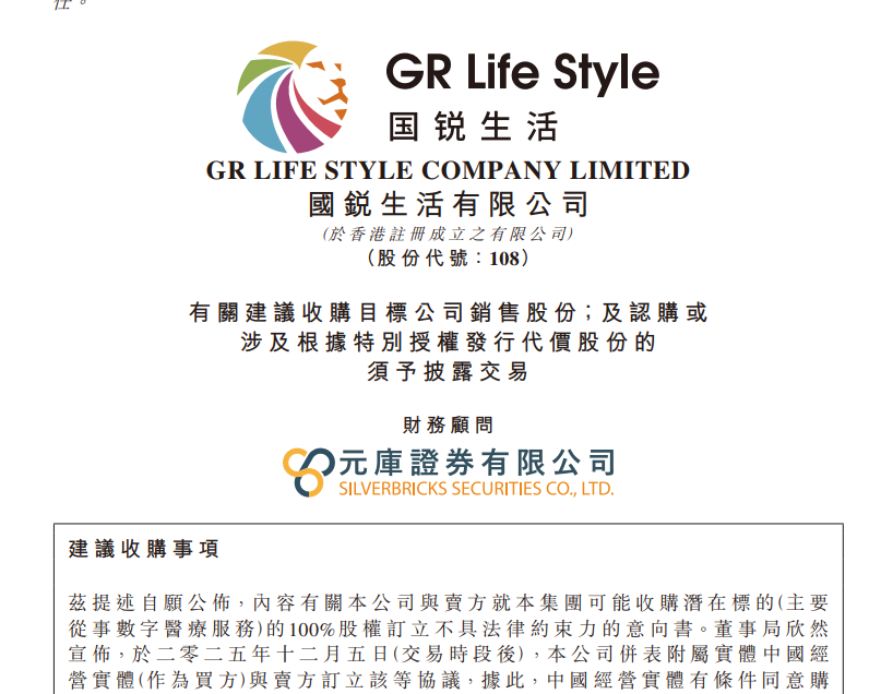 为寻求业务组合多元化,拓宽收入来源,国锐生活布局数字医疗赛道。近日,国锐生活(00108.HK)宣布,将以2.69亿元的价格,收购北京春雨天下软件有限公司(即“春雨医生”)78.3%的股份。收购的方式,是主要通过发行代价股份及部分现金支付。