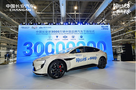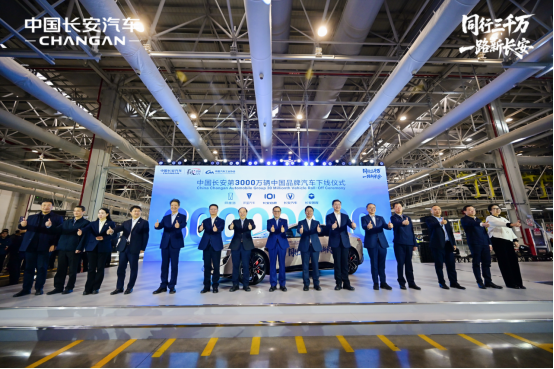 2025年12月10日,中国长安正式迎来了第3000万辆中国品牌汽车的下线。中国长安汽车党委书记、董事长朱华荣表示“今日之长安,是广大用户厚爱,合作伙伴、社会各界长期支持,以及一代代长安人无私奉献的结果。向全球所有长安的用户致敬,对所有关心、支持长安的每位朋友、社会各界表示衷心的感谢”。