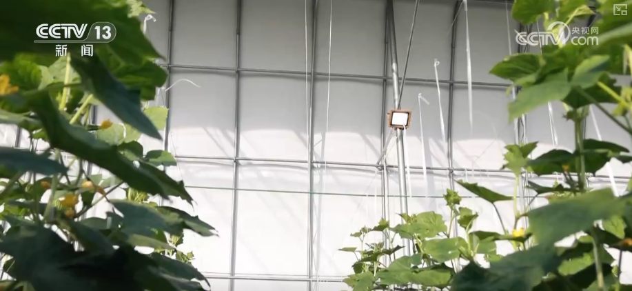 光照不足是冬季种菜的“老大难”,在这处黄瓜种植棚里,一排排LED植物补光灯派上了用场。这些灯具能够根据蔬菜生长的不同阶段,精准提供所需光照强度,帮助蔬菜生长。