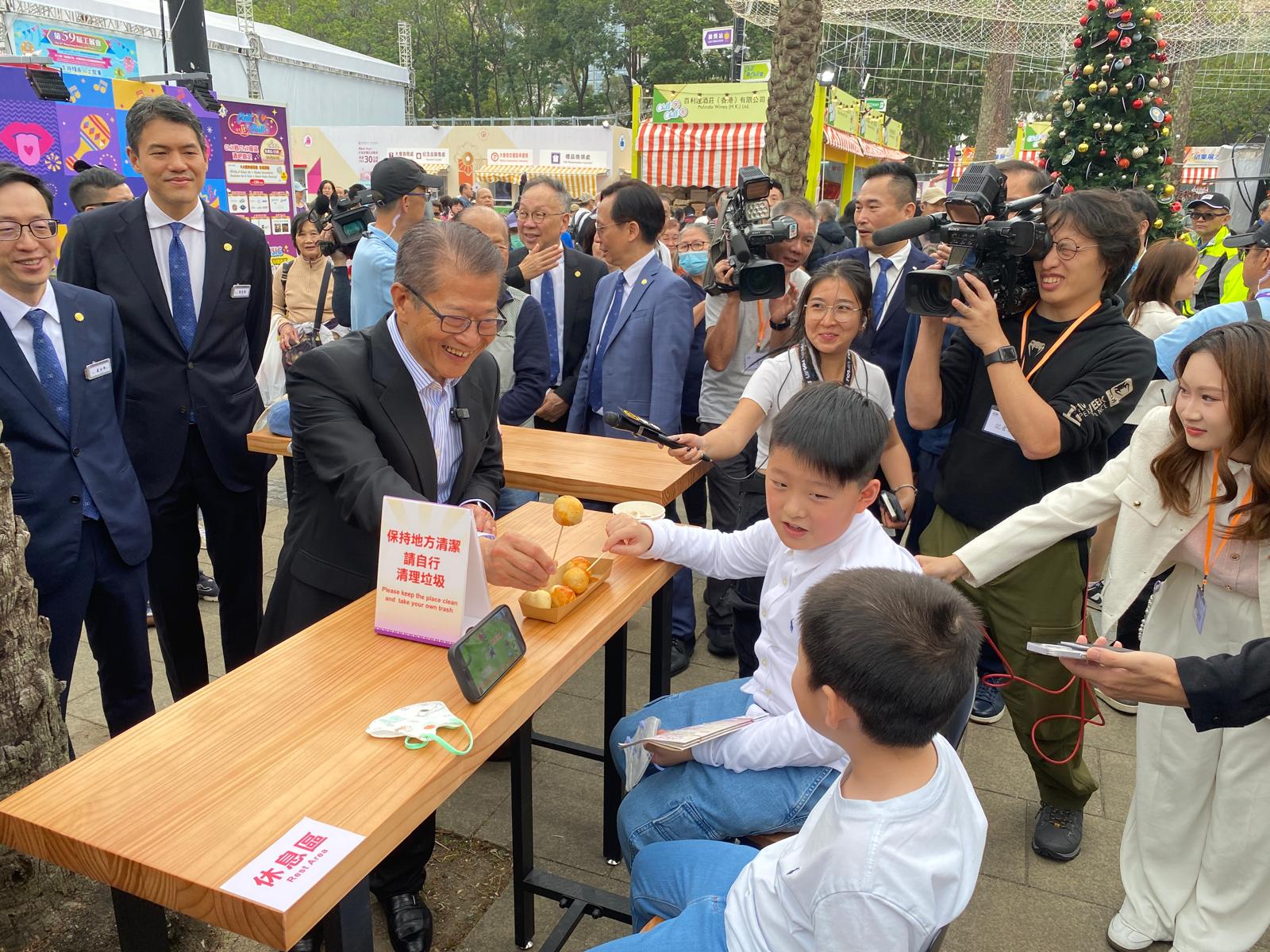 陳茂波到場參觀多個攤位。(FB圖片)