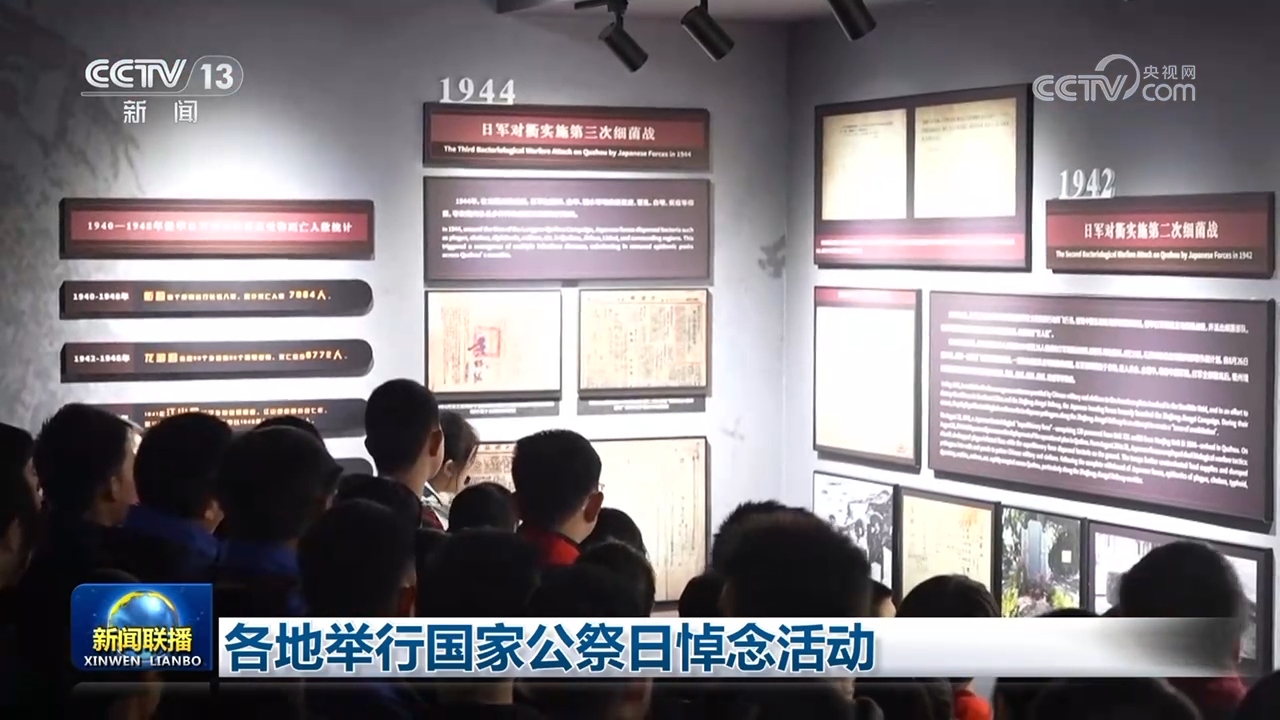 央视网消息(新闻联播):12月13日,各地举行国家公祭日悼念活动,铭记历史、缅怀先烈、珍爱和平、开创未来,为强国建设、民族复兴伟业凝聚奋进力量。
