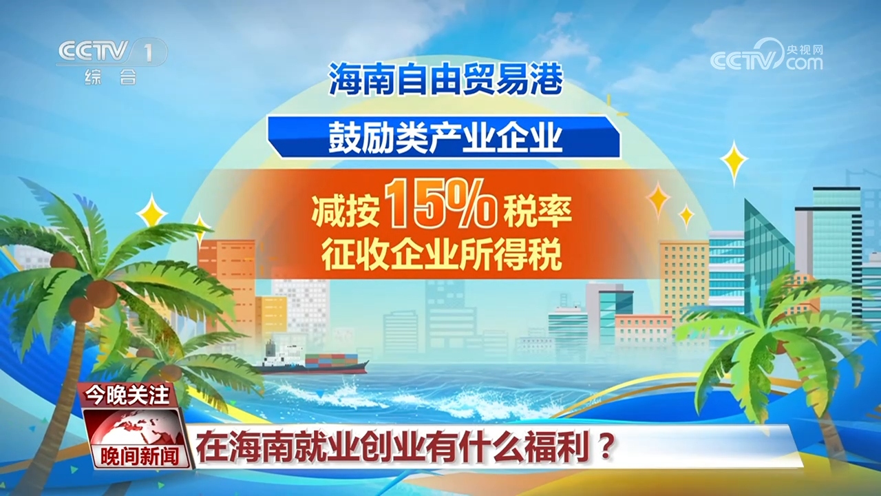 税收优惠还不止于此。海南自由贸易港旅游业、现代服务业、高新技术产业企业新增境外直接投资,所得免征企业所得税。鼓励类产业企业,减按15%税率征收企业所得税。鼓励类产业都有哪些呢?《海南自由贸易港鼓励类产业目录》包含1100多条产业条目,是全国最长的,涵盖生物医药、海上风电、新能源汽车等战略性新兴产业,还包括高标准农田建设、商业航天发射、国际教育等自贸港重点发展领域,精准匹配海南产业体系建设需求。