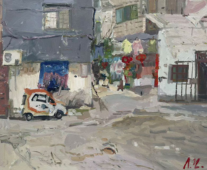 廖正定 《晚风过陌》 25X25cm 布面油画 2025年