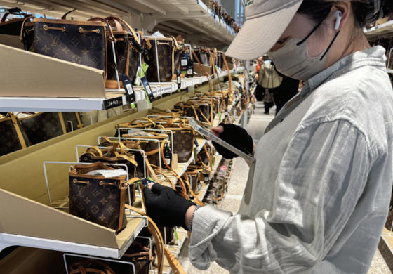 图为消费者正在超级转转门店包袋区挑选二手奢侈品包。