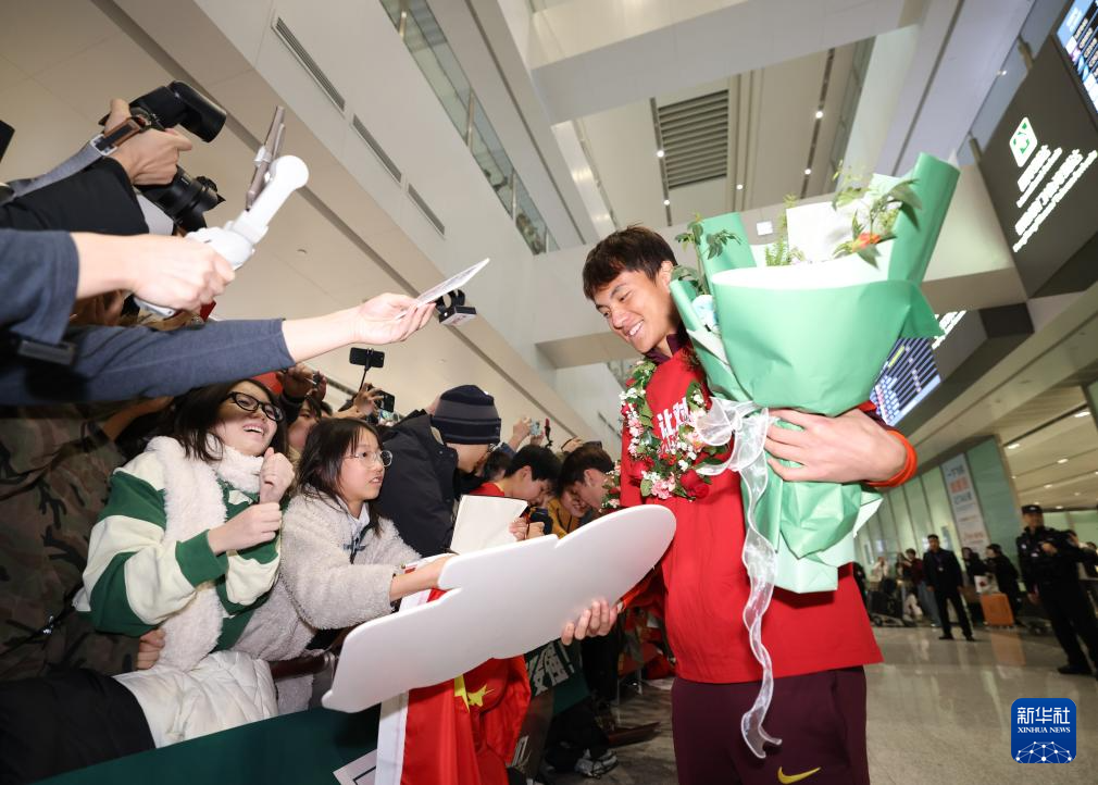 1月26日,在沙特阿拉伯夺得U23男足亚洲杯亚军的中国队抵达北京大兴国际机场。