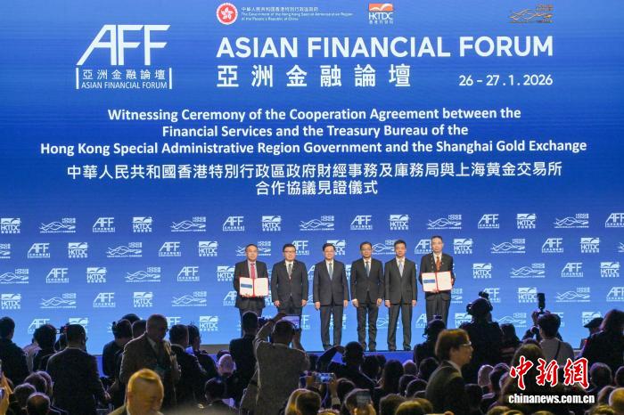 1月26日,在香港揭幕的第19届亚洲金融论坛上,香港特区政府财经事务及库务局与上海黄金交易所签署合作协议,推动两地黄金市场合作。图为香港特区行政长官李家超(左三)、中国人民银行副行长邹澜(右三)等嘉宾见证签署合作协议。 中新社记者 陈永诺 摄当天,财库局与上海黄金交易所在论坛上签署合作协议。合作协议包括两项前瞻性安排:一是建立香港黄金中央结算系统的高层次协作治理架构,特区政府全资拥有的香港贵金属中央结算系统有限公司(简称“港金结算公司”)董事会将由财库局局长担任主席,上海黄金交易所代表出任副主席。