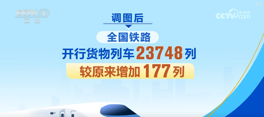 调图后,全国铁路安排图定旅客列车12130列,较原来增加243列;开行货物列车23748列,较原来增加177列。