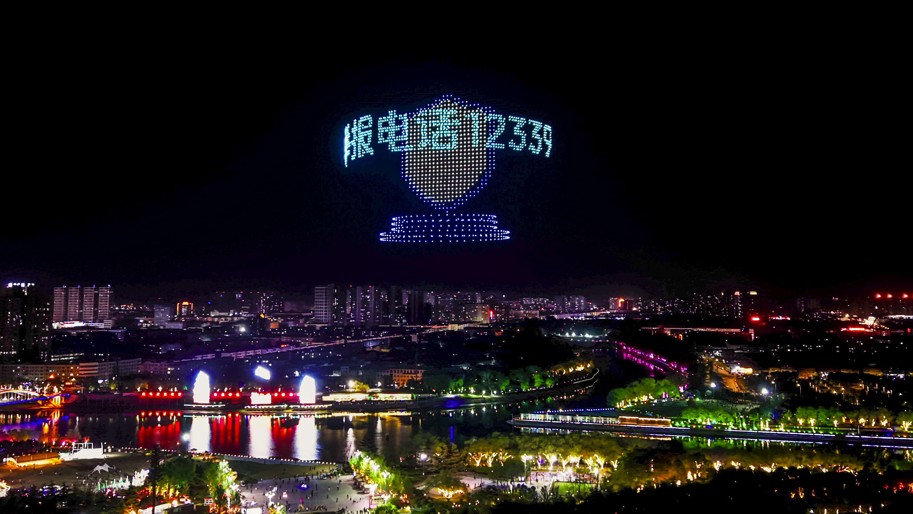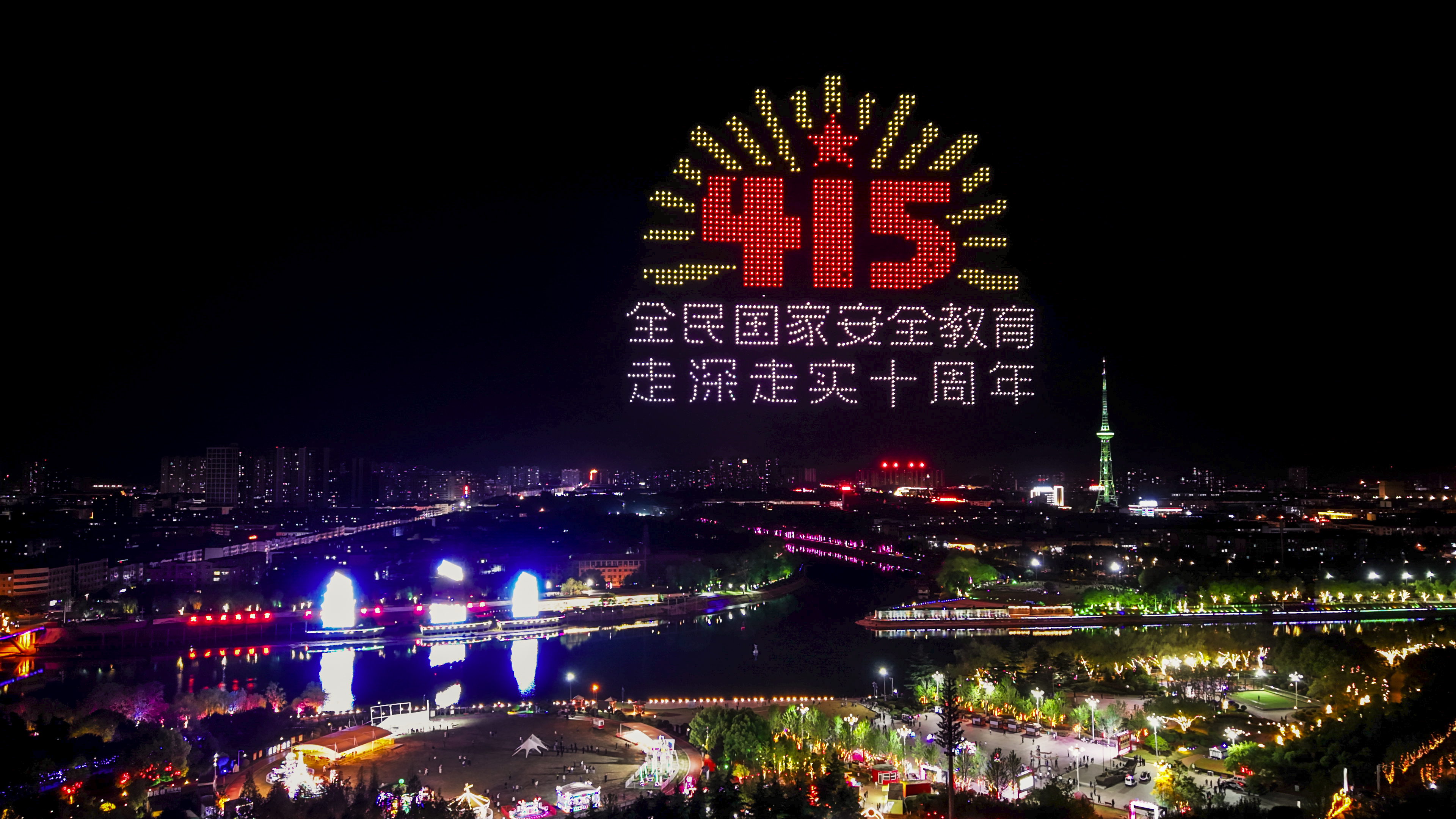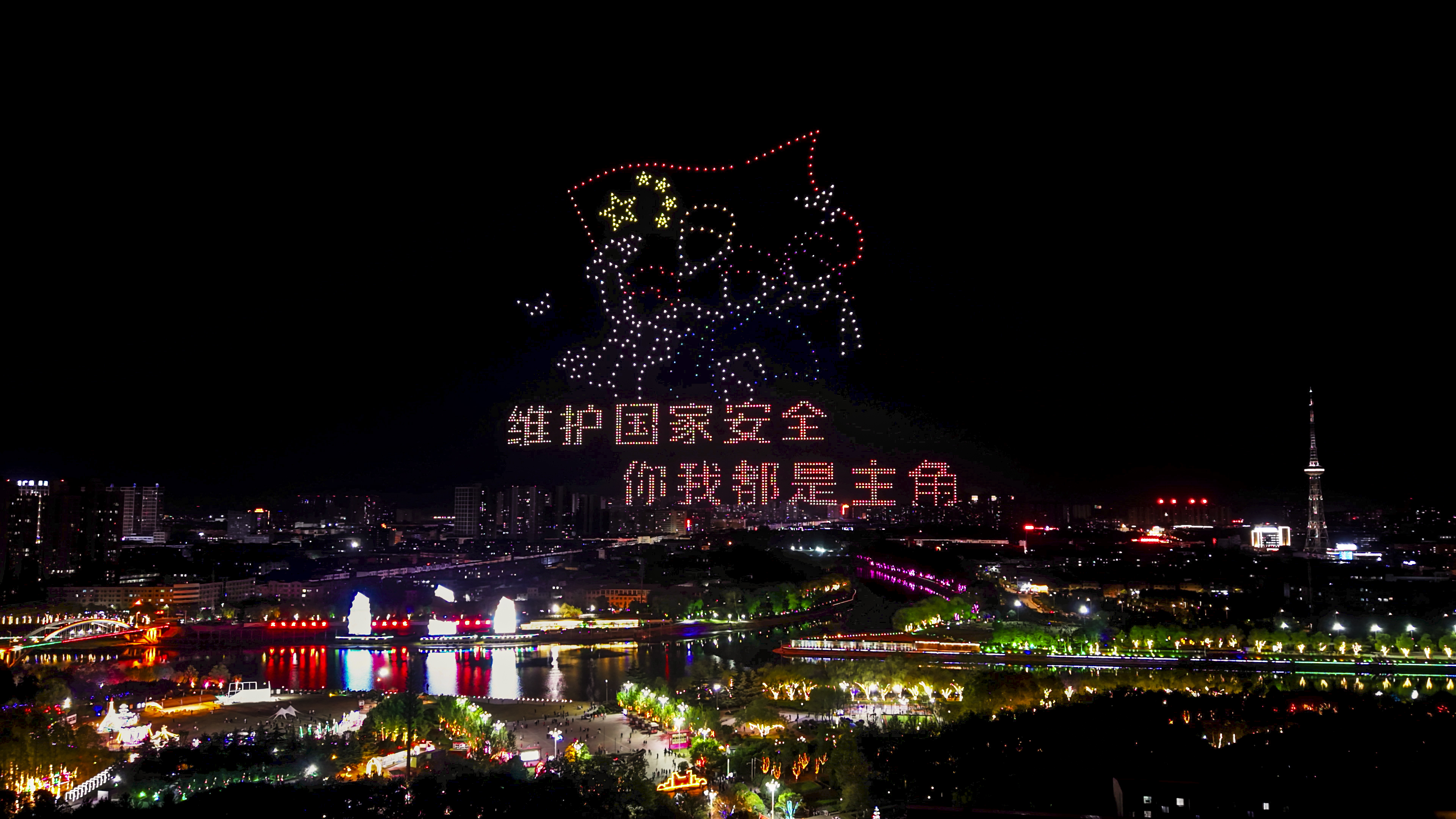 漯河“国家安全”主题教育无人机灯光秀现场。