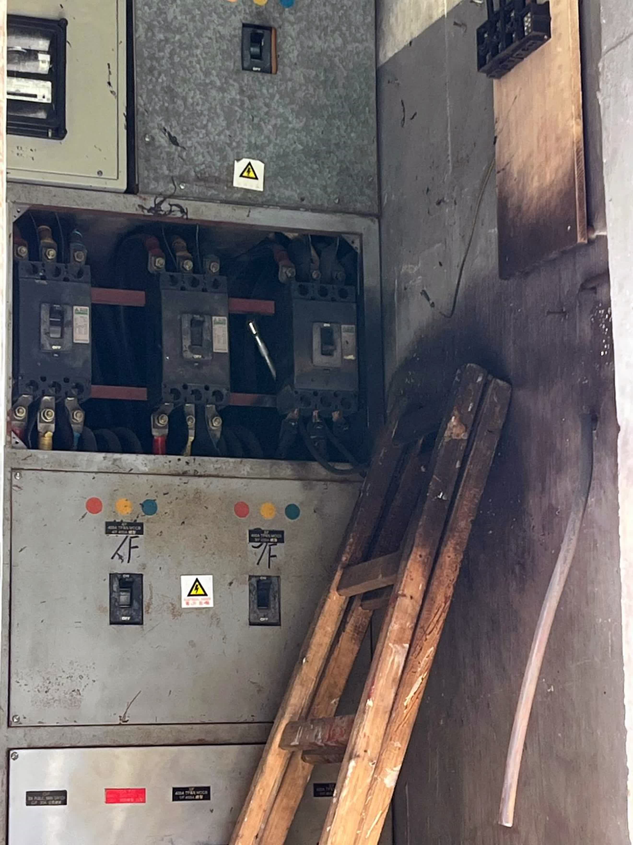 目前涉事工廈受意外影響停電。現場所見,肇事電錶房內一組電掣及放在側邊的木梯嚴重熏黑,消防員和警員圍封現場調查。案件列作工業意外跟進。