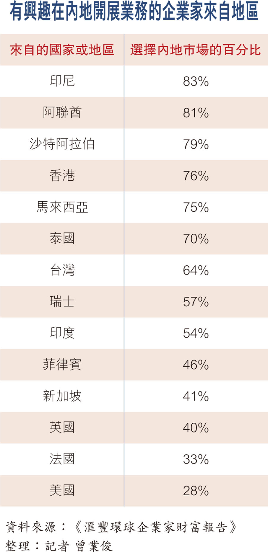 對於將拓展新市場作為主要商業策略的企業家來說,內地在15個市場中名列第四。嚴樂居展望未來5年,亞洲將進行數以萬億計的財富轉移。今年滙豐私人銀行在內地和香港加強專為企業家而設的財富管理服務,並將陸續拓展至更多市場。
