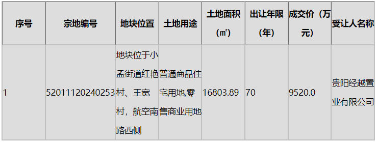 花溪区小孟街道两宗商业用地均由贵阳经越置业有限公司竞得,体现出企业对区域发展前景的信心。