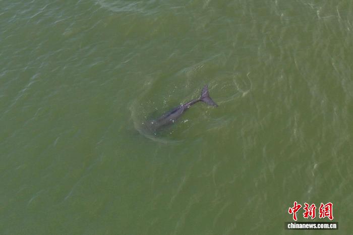 2021年9月3日,江西南昌,一只长江江豚在赣江水域畅游。中新社记者 刘占昆 摄
