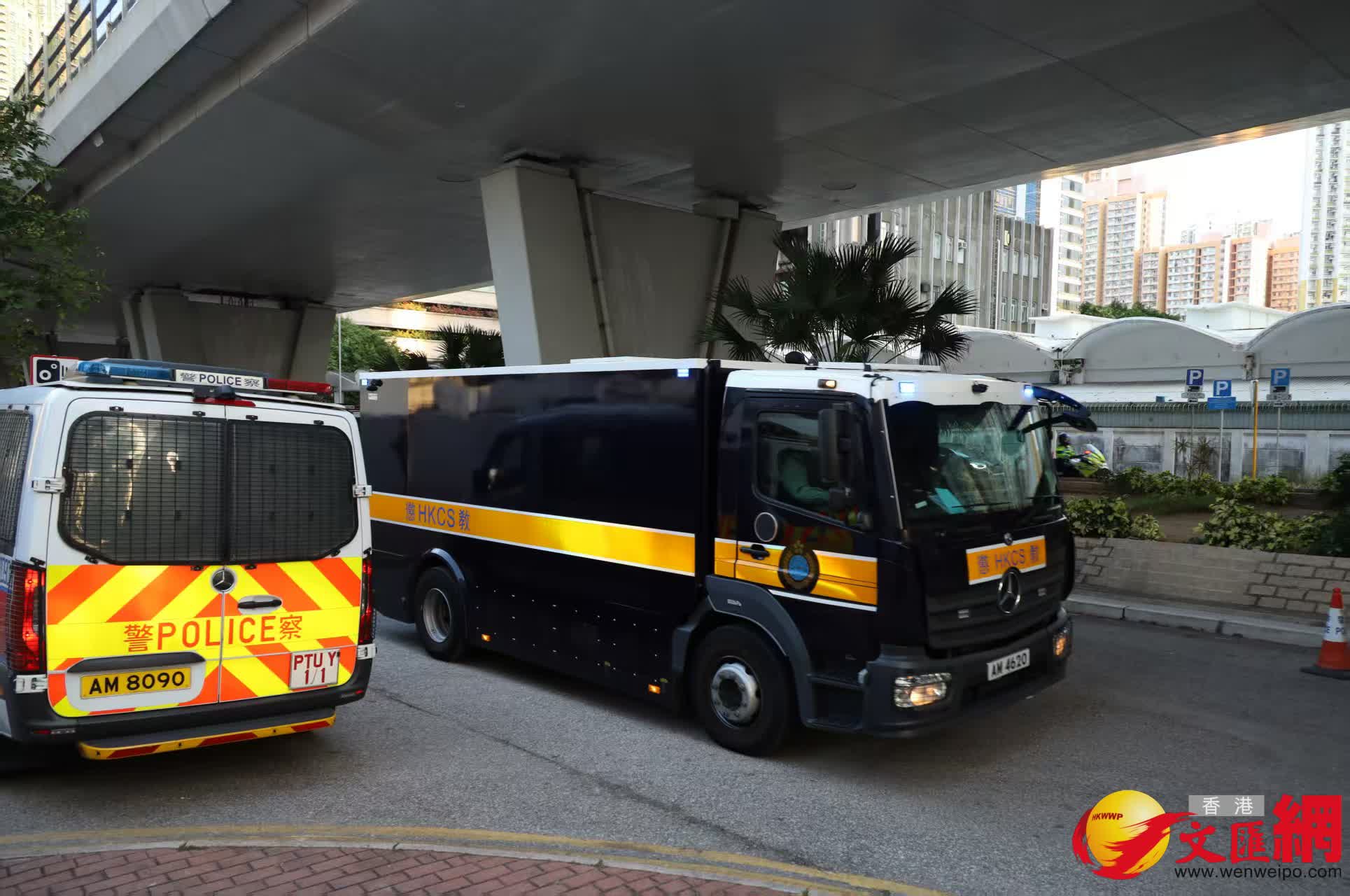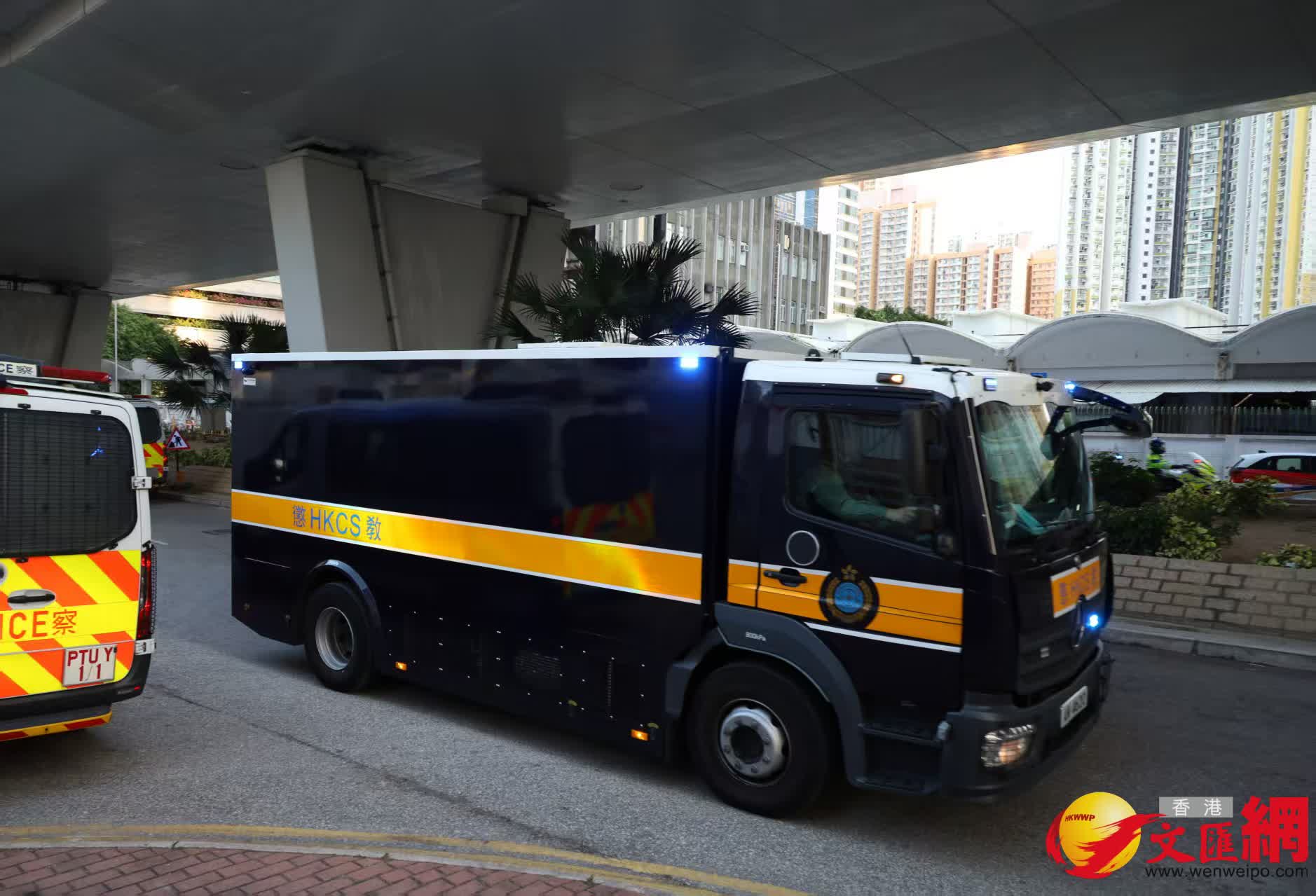 黎智英案今裁決,囚車入場。(香港文匯報記者萬霜靈攝)
