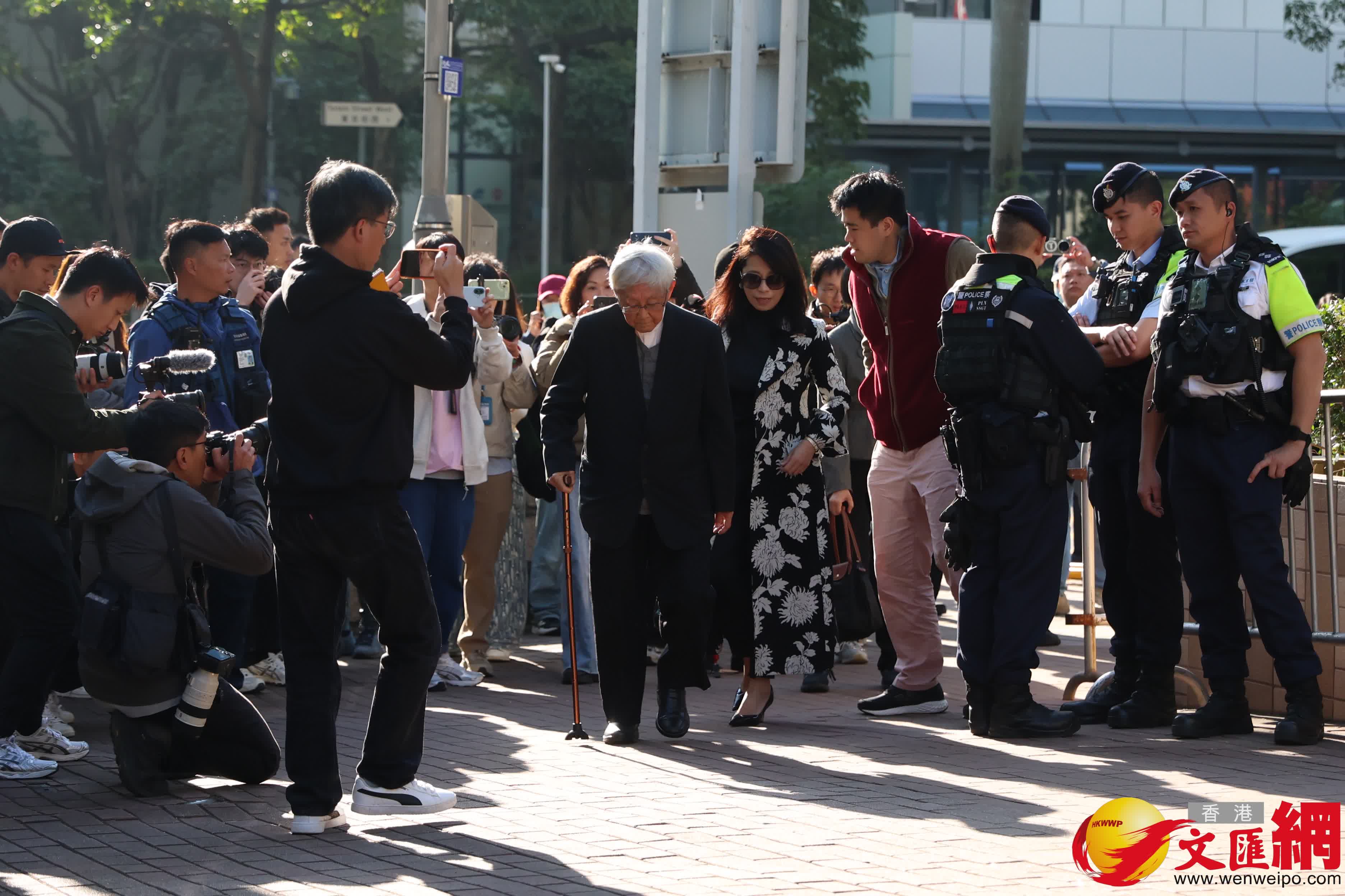 黎智英案今裁決,黎智英妻子李韻琴、幼子黎順恩及天主教香港教區前主教陳日君現身法庭。(香港文匯報記者萬霜靈攝)